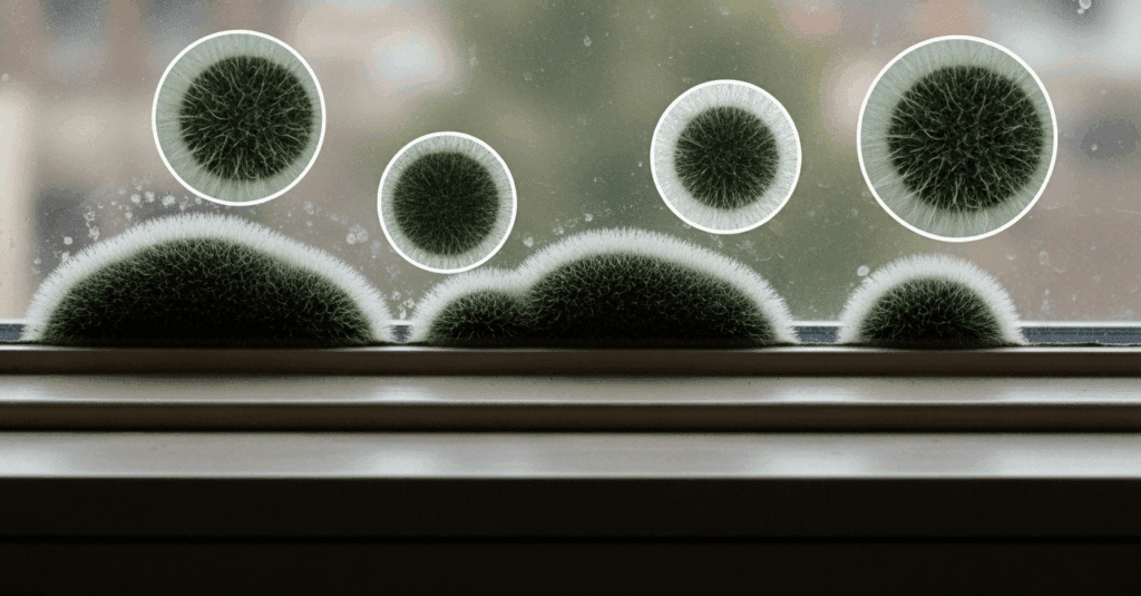 Alternaria is a mold type commonly found in homes, particularly in damp areas. It often appears as dark green or brown and can grow on a wide range of surfaces, including carpets, fabrics, and wood. Alternaria is known to cause allergic reactions in some people. Prolonged exposure to Alternaria can lead to more severe health problems, such as the development of asthma, making its removal a matter of health preservation.